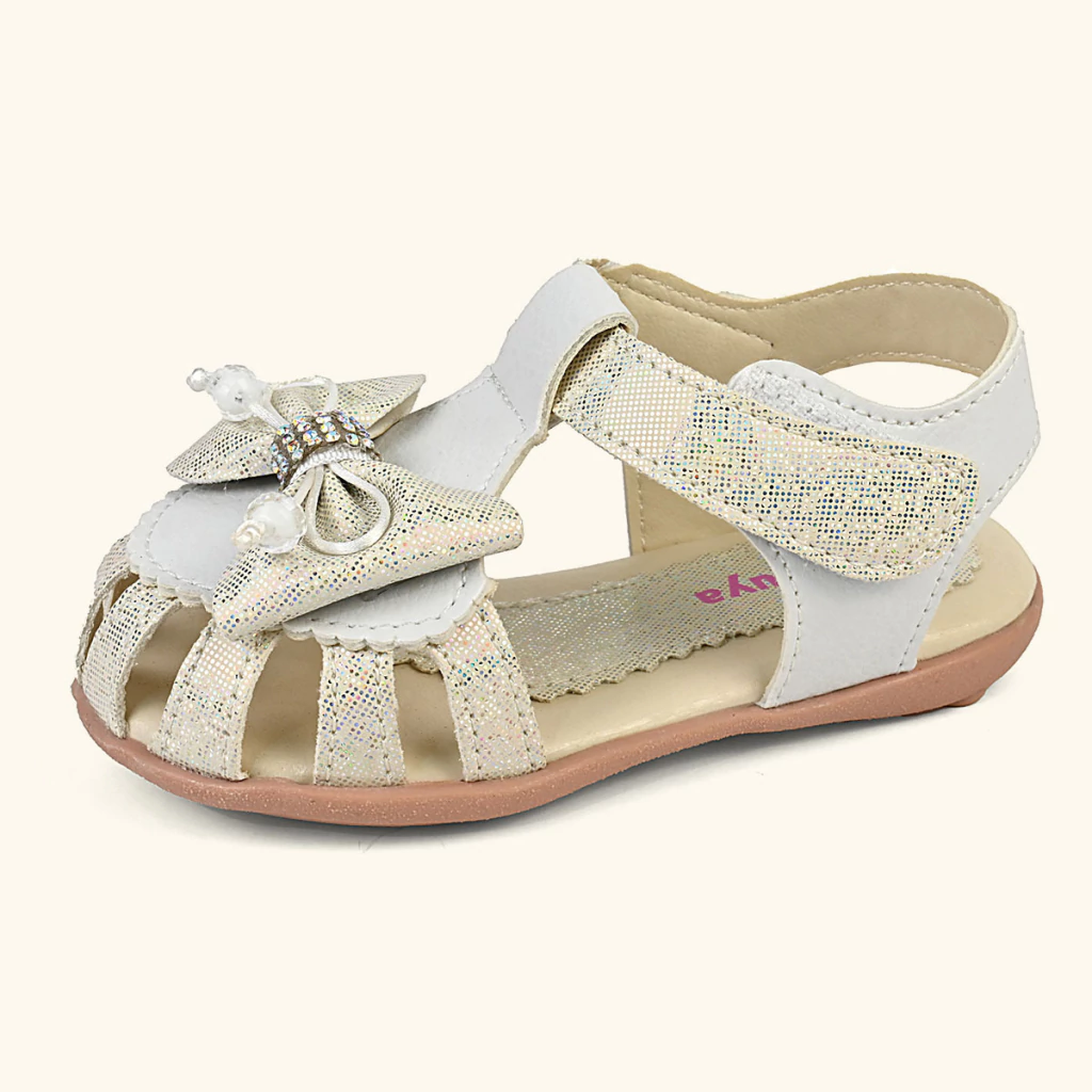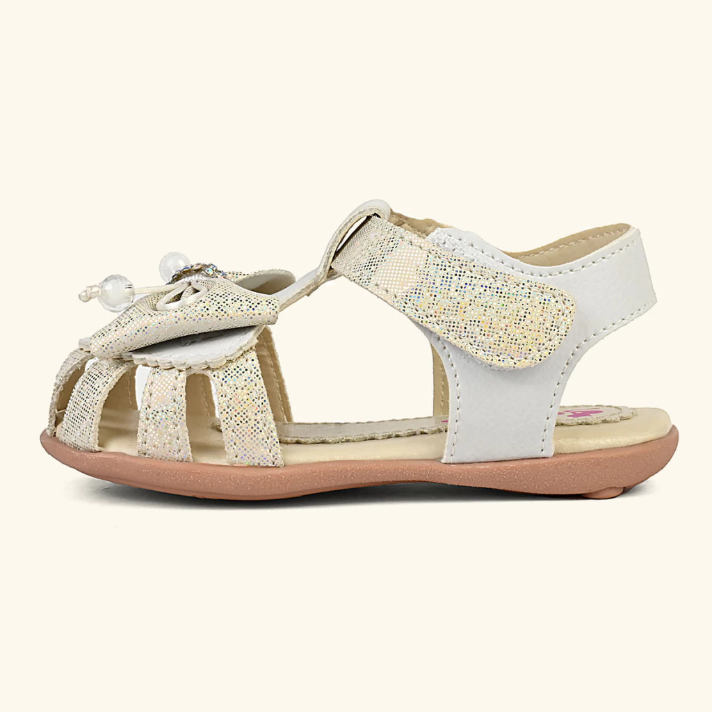 Kit Sandália Infantil Bebê Menina Branco Brilho Com Laço Leve Estilo