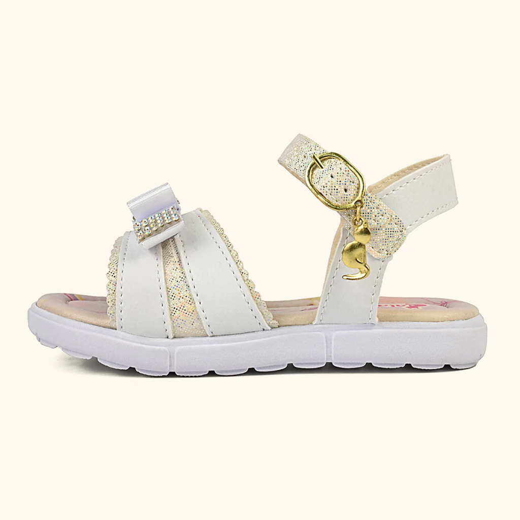 Kit Sandália Infantil Menina Laço Antiderrapante Festa Com Bolsa Branca/Brilho