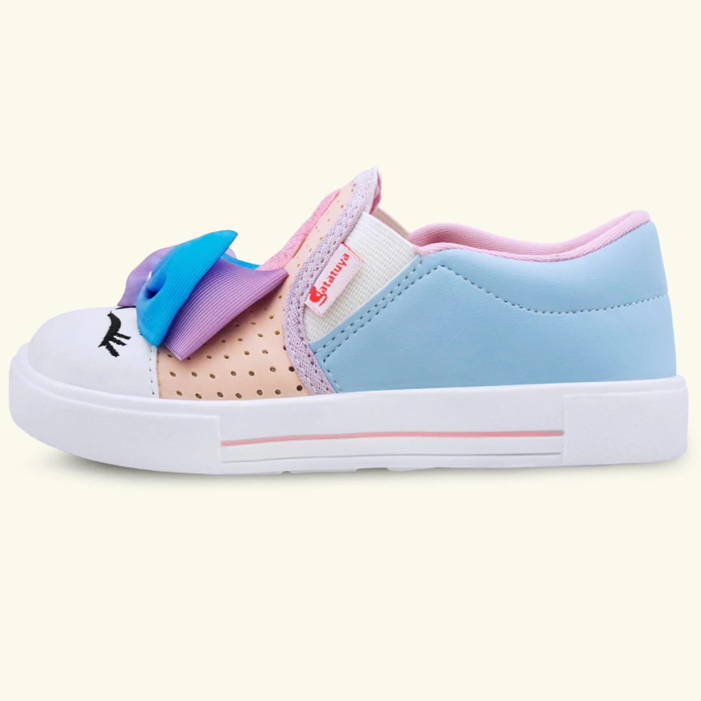 O modelinho é todo confeccionado em material de alta qualidade e fácil de limpar, com detalhes bordados na parte frontal de unicórnio com lacinho, é a coisa mais fofa! O modelo é calde-fácil, com elástico na lateral para melhor ajuste, super prático para o dia a dia. A sola do tênis é flexível e antiderrapante, do jeitinho que as meninas amam para se divertir sem se preocupar.