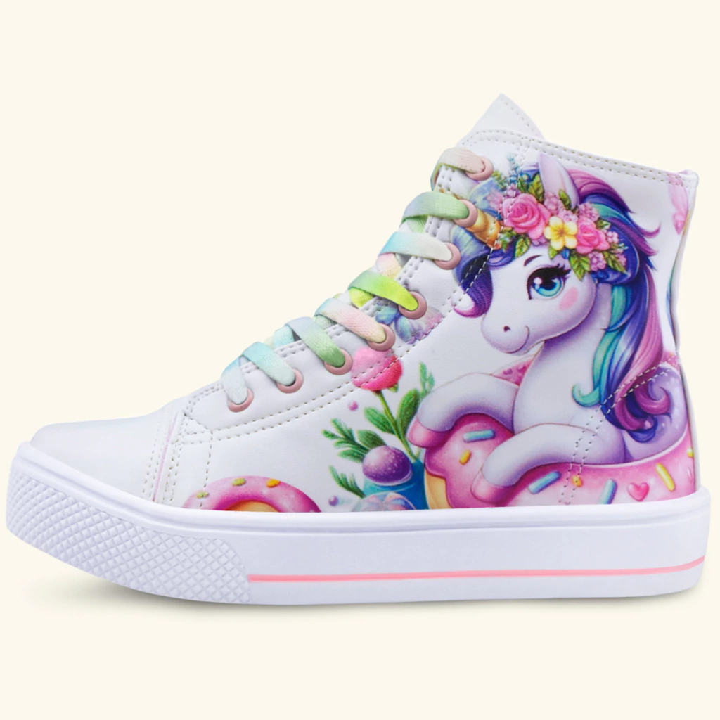 Tênis Botinha Unicórnio Menina Cano Alto Branco/Colorido
